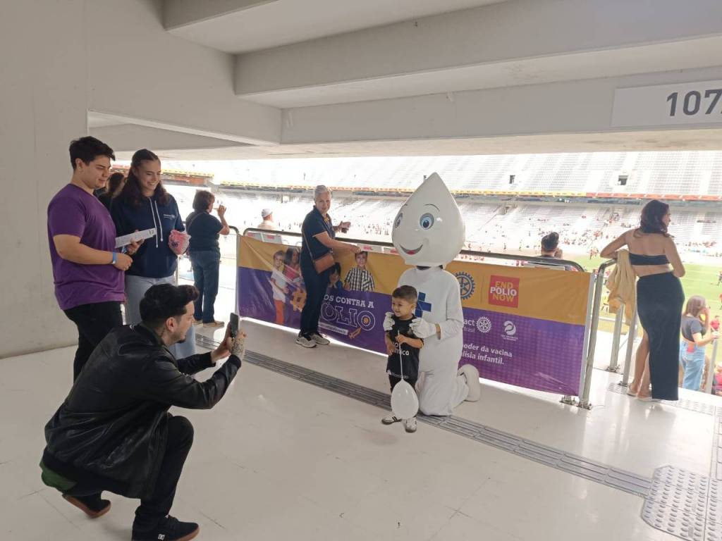 A erradicação da pólio é uma das inciativas mais longas e importantes da nossa trajetória rotária, o Distrito 4730 através das Comissões de Projetos Humanitários, Fundação Rotária e Imagem Pública, aproveitando o evento na Ligga Arena das disputas finais da Copa Furacão Centenário 2024, que aconteceu no sábado, 9, e no domingo, 10, quando o estádio recebeu cerca de 3.300 alunos, de 44 sedes da Escola de Futebol Furacão, esteve em campo com o nosso querido mascote Zé Gotinha e vários clubes levando conhecimento a população infantil da necessidade de continuar a imunização para evitar inúmeras doenças.