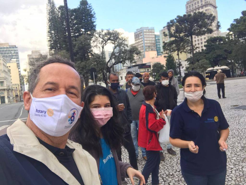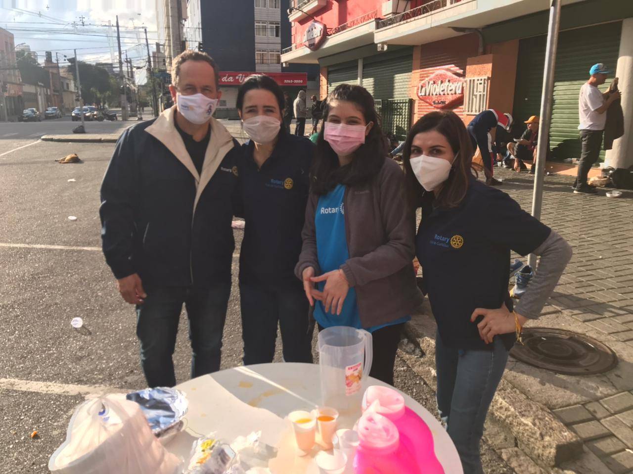 ROTARY CLUB DE CURITIBA - DIA 20 DE JUNHO: AÇÃO VOLUNTÁRIA CONTOU COM MARIANA VIARO, ALÉM DOS COMPANHEIROS JORGE FRANCO, HABIBE MOLINA (E SUA FILHA GIOVANNA), E JOÃO CÂNDIDO, NA DISTRIBUIÇÃO DE 200 MARMITAS. LOCAL: PRAÇA TIRADENTES, ÀS 15 HORAS, PARA PESSOAS EM SITUAÇÃO DE VULNERABILIDADE.