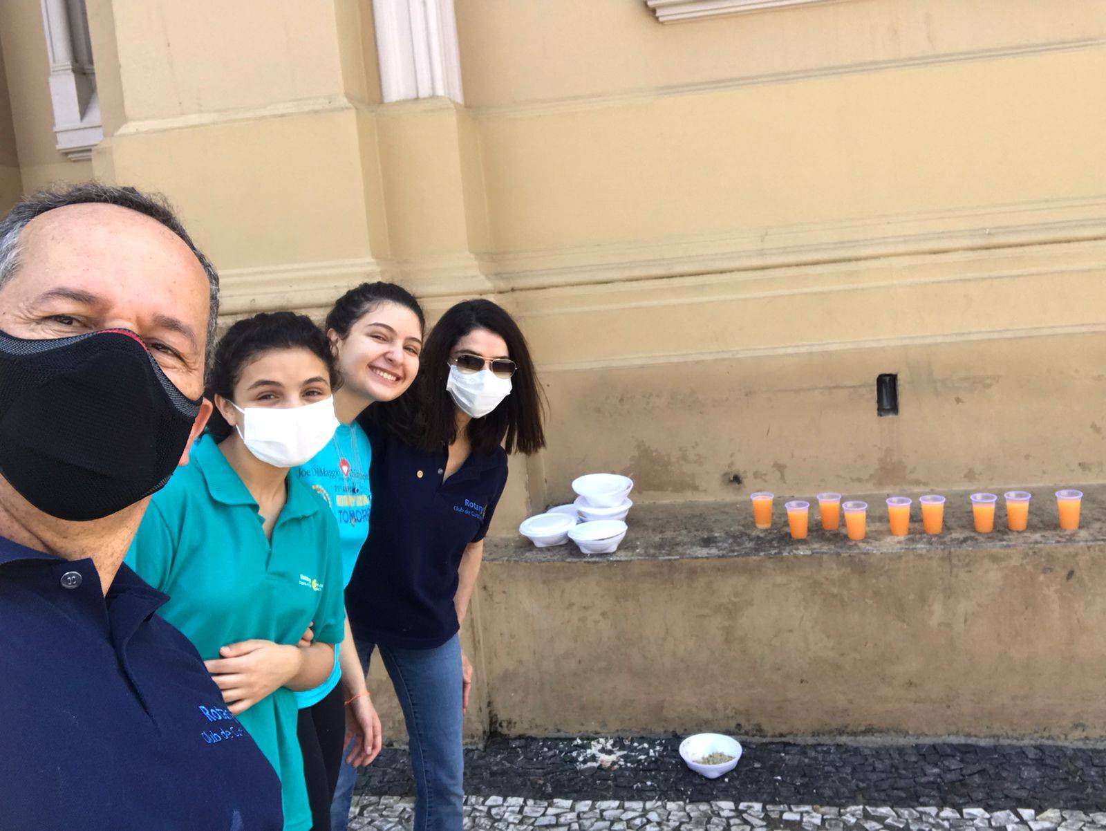 O Rotary Club de Curitiba realizou neste domingo, dia 05 de setembro, mais uma entrega de 150 marmitas dentro do Projeto Marmitas aos Necessitados, e contou com a presença dos companheiros Governador Jorge Franco (2019-2020), Habibe Molina e suas duas filhas, Geovanna e Rafaela, e com a nova companheira Sandra Frenzel (posse dia 16.09.2021). O local foi na Praça Tiradentes, ao lado da Basílica Catedral Metropolitana de Curitiba.