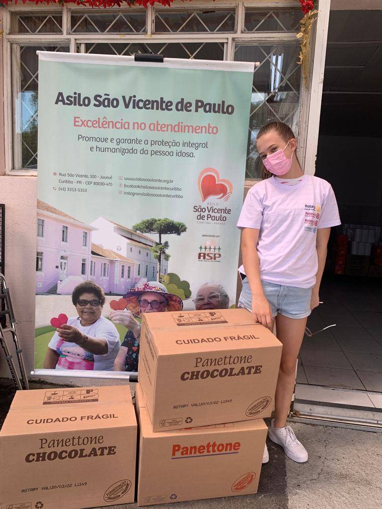 O Interact Club do RC Curitibão fez a entrega de 10 caixas de panetones solidários no Lar de Idosos São Vicente de Paula, proporcionando alegria, carinho e solidariedade aos vovôs e vovós nesta época natalina e tão significativa principalmente para eles. O Asilo São Vicente de Paulo é uma instituição sem fins lucrativos localizada em Curitiba (PR). É referência nacional no atendimento e na promoção da qualidade de vida e no resgate à dignidade da pessoa idosa. Fundado em 1926, o Asilo é atualmente mantido pela Ação Social do Paraná, instituição que atua desde 1944 nos eixos da Assistência Social, da Educação e da Segurança Alimentar e Nutricional. O Asilo é responsável pela garantia do bem-estar de idosas, com capacidade para 150 moradoras. O atendimento de longa permanência é dirigido a mulheres que possuem graus diferenciados de limitações, autonomia e independência e demandam de cuidados específicos. Atende também a idosos de ambos os sexos no Centro Dia – dirigido para idosos que convivem com a família. Este programa oferece atendimento diário à pessoa idosa, estimulando o convívio social, o vínculo familiar e o bem-estar psicofísico do participante.