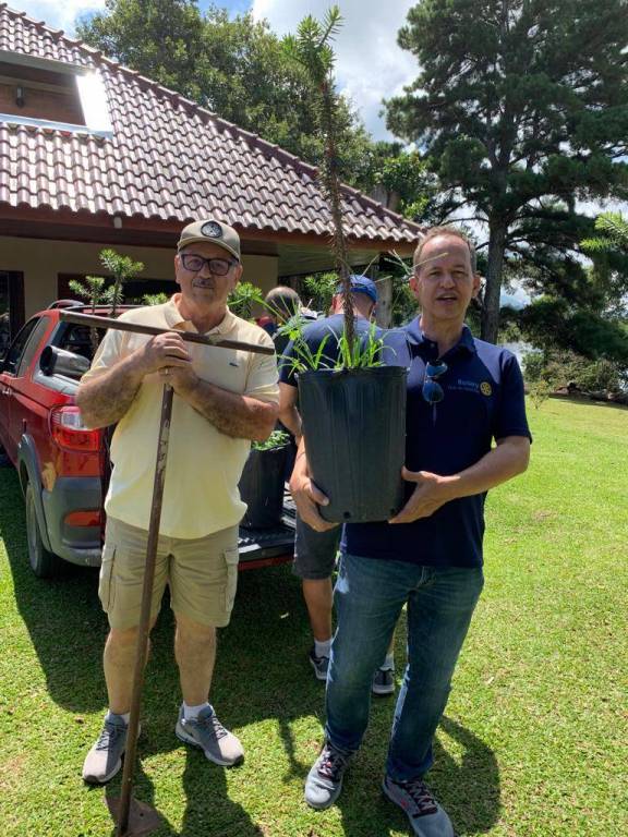 Casa da Cultura – SANEPAR. Piraquara II recebeu mais de 100 mudas de araucária para ajudarem a reter água nas encostas. A conservação da natureza na região da represa ajuda a reter água nas encostas e garantir abastecimento. O entorno da barragem de Piraquara II, na região metropolitana de Curitiba, recebeu a plantação de 117 mudas de araucárias, árvore símbolo do Paraná, neste sábado, dia 26.02, das 10h00 às 12h00. A ação contou com a presença da Governadora do Distrito 4730, Mariane Nascimento e muitos Clubes que participaram também da comemoração de 117 anos do Rotary. Endereço: Rua Atílio Pedão, 89, Piraquara/PR. A ação foi realizada por membros do Rotary Club Curitiba Corporativo Sanepar e do Guabirotuba, e demais clubes da instituição que desejarem participar, com a intenção de auxiliar na conservação da natureza na região. Foram plantadas 15 mudas fêmeas neste dia, as covas foram deixadas prontas pelas equipes da Sanepar. As 102 mudas restantes foram plantadas ao redor da barragem. O RC de Curitiba participou deste Projeto Humanitário com a doação de R$ 200,00. Confirmaram presença os seguintes companheiros: Jorge Franco, Chang Chain, Sandra Frenzel, Luís Bitencourt, Sergio Fernandes.
