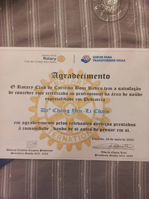 ROTARY INTERNACIONAL - DISTRITO 4730 - TROFÉU DR. WALMYR MAINGUÉ EDIÇÃO 2022 - ROTARY CLUB DE CURITIBA - Dra. CHANG CHAIN