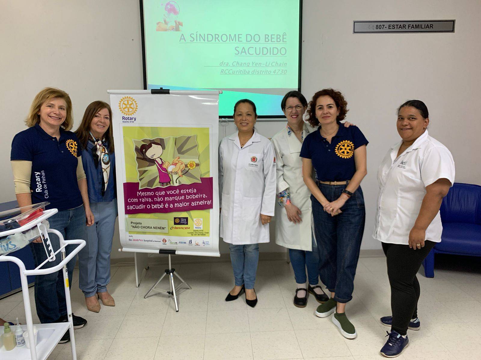 PALESTRA "SÍNDROME DO BEBÊ SACUDIDO" para a Maternidade de Pinhais, proferida pela companheira e médica pediátrica Dra. Chang Chain/RCC, organizada pelo RC de Pinhais. Presencial.