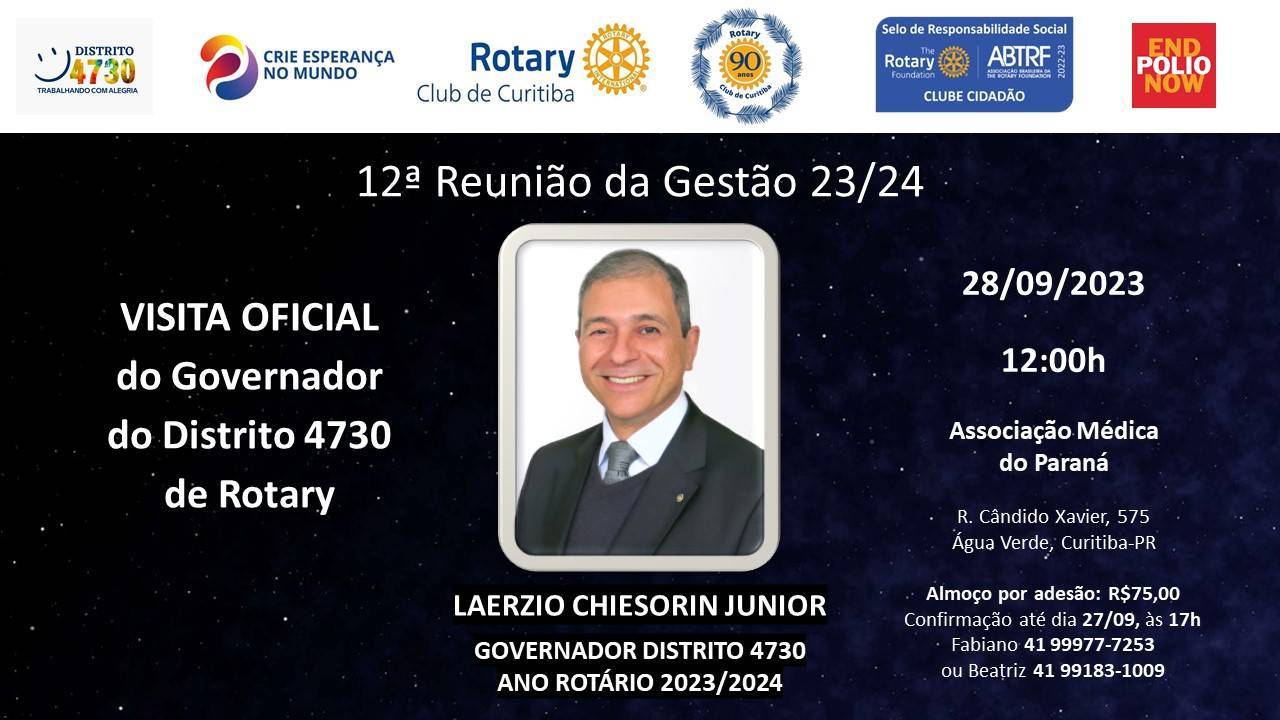 VISITA OFICIAL do Governador do Distrito 4730 de Rotary, LAERZIO CHIESORIN JUNIOR, Ano Rotário 2023/2024, ao Rotary Club de Curitiba.