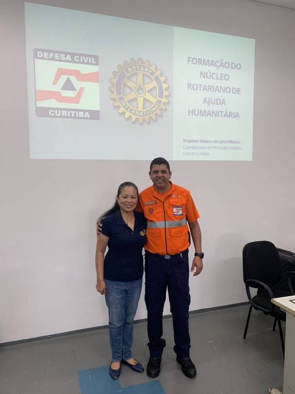 O RCC Avenida das Torres, em parceria com a Defesa Civil de Curitiba e com o apoio do D 4730 RI, realizaram curso presencial de formação do Núcleo Rotariano de Ajuda Humanitária ocorrido no Centro de Formação da Guarda Municipal de Curitiba no dia 11 de maio/24 (sábado), das 09h00 às 18h00. Abertura e formação da primeira turma do Plano de Auxílio Mútuo (PAM), com a presença do Governador do Distrito 4730 RI Laerzio Chiesorin Jr. O curso foi ministrado pelo Inspetor Nelson Lima e sua equipe. O Rotary Club de Curitiba foi representado pela companheira Chang Chain.