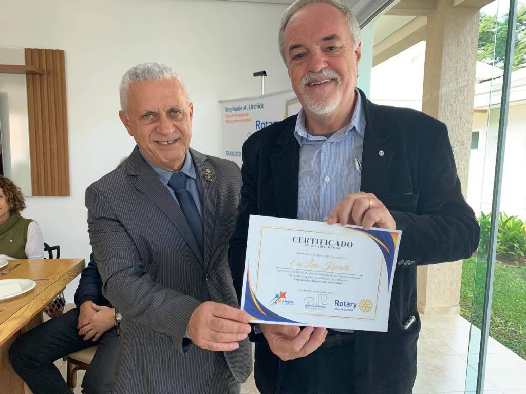 Destaque especial para a presença do Governador do Distrito 4730, Alfredo Arten Júnior (2024-25), que realizou a entrega de Menção Honrosa aos companheiros Deodato Mansur, Eri Luis Kunrath, Sandra Mara Aubrift de Lara e Jorge Humberto Agudelo Franco, reconhecendo sua dedicação e serviços prestados ao Rotary.