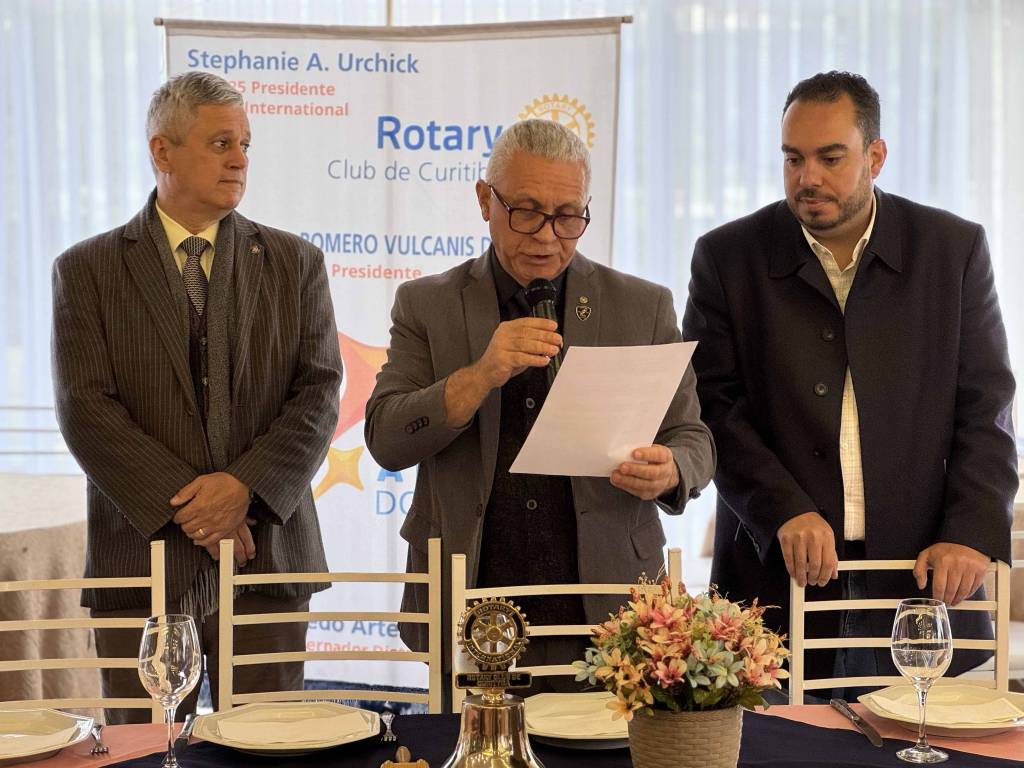 A Mesa Diretiva também foi composta pelo Governador eleito 20025-2026 do Distrito 4730, Marcelo Augusto Passos e pelo presidente do Rorary Club de Curitiba Alto da Glória, Giocondo Villanova Artigas Neto e pelo presidente do ano rotário 1990-1991, Fernando Vidal Pereira de Oliveira, o decano do colégio de presidentes do clube, que foi o primeiro da capital e do estado, fundado em 1933, há 92 anos em ação.