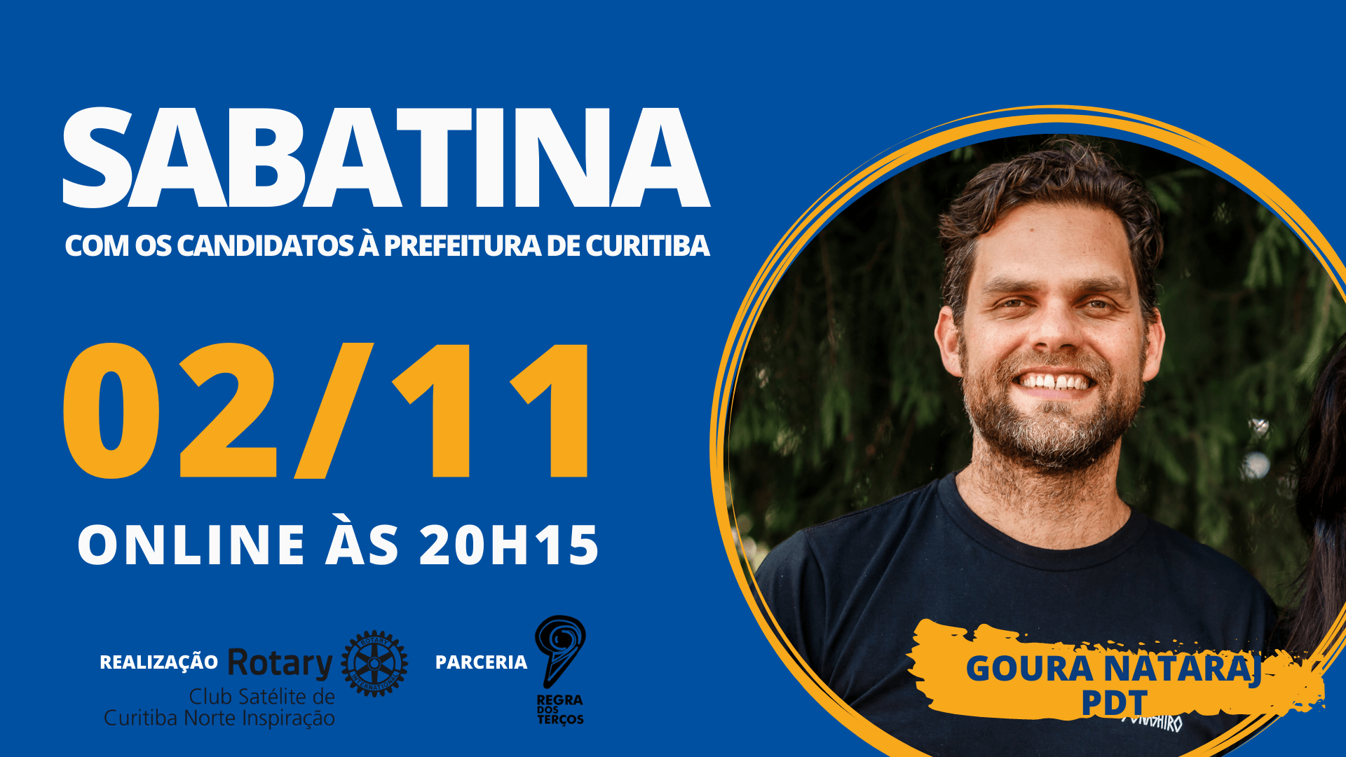 O Rotary Club Satélite de Curitiba Norte Inspiração, em parceria com o Regra dos Terços, promoveu nesta segunda (2), às 20h15, uma sabatina com Goura Nataraj, candidato à prefeitura de Curitiba pelo PDT.