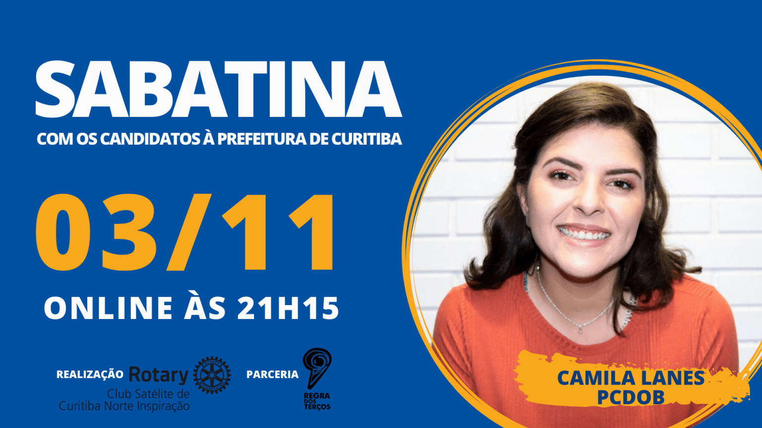 O Rotary Club Satélite de Curitiba Norte Inspiração, em parceria com o Regra dos Terços, promoveu nesta terça (3), às 21h15, uma sabatina com Camila Lanes, candidata à prefeitura de Curitiba pelo PCdoB.