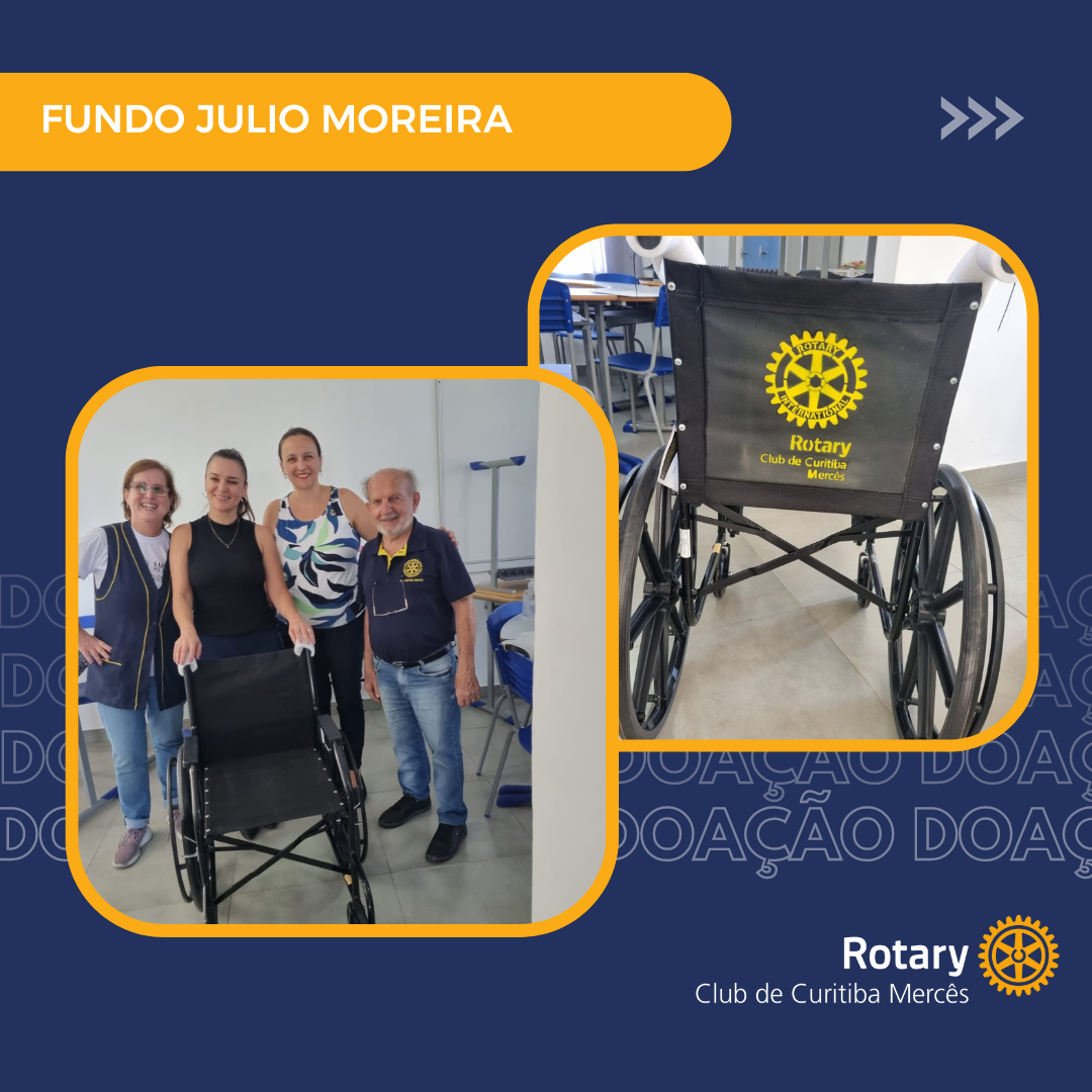 O Rotary Club de Curitiba Mercês, através do Fundo Distrital Júlio Moreira 2023/2024, efetuou a compra e a entrega de uma cadeira de rodas para a Escola Estadual Ângelo Trevisan.