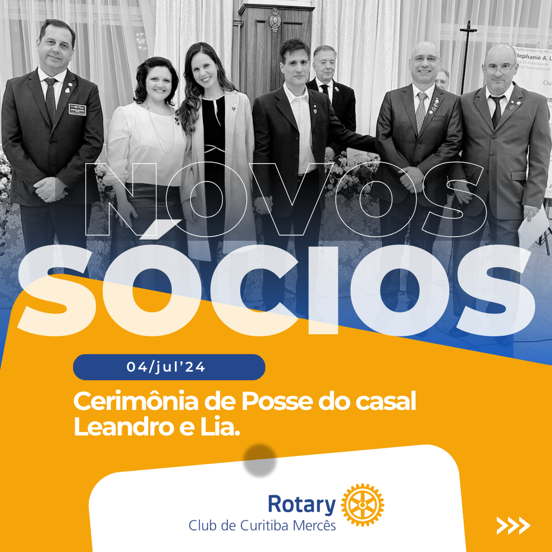 Na última 5ª, 04 de julho, tivemos a honra de empossar dois novos companheiros comprometidos com a causa rotária. Leandro e Lia trazem consigo entusiasmo e disposição para fazer a diferença em nossa comunidade e no mundo.