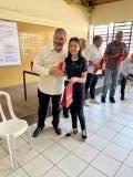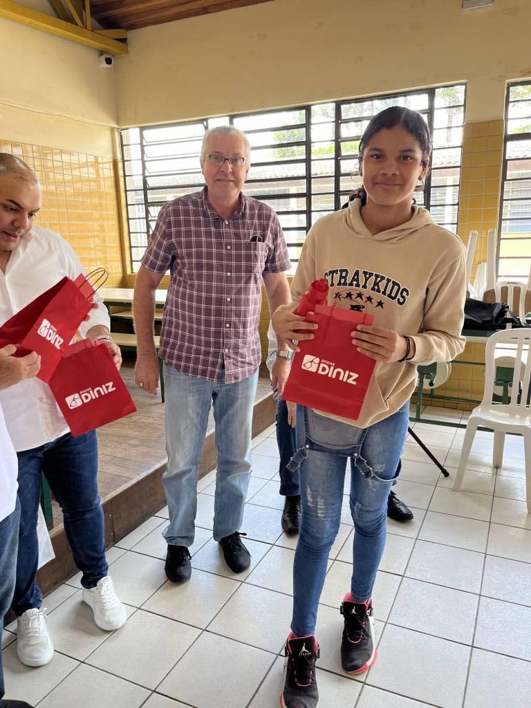 Na oportunidade foram entregues os 29 óculos aos alunos do Colégio. Neste projeto contamos com as empresas patrocinadoras: Centro Paranaense de Oftalmologia – CPO, responsável pela realização dos exames oculares; Óticas Diniz -Sjp responsável pela confecção das lentes e fornecimento das armações; e Paranasul Transportes Logística, responsável pelo transporte dos alunos para a realização dos exames e a escolha das armações.