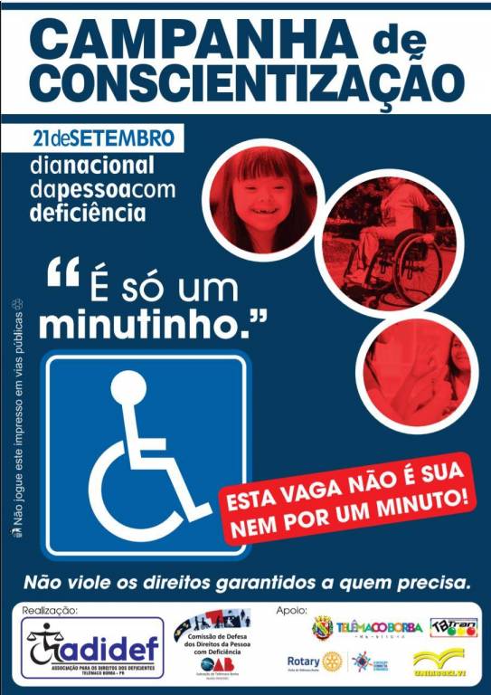 A Comissão de Defesa dos Direitos das Pessoas com Deficiência da Ordem dos Advogados do Brasil, esta desenvolvendo a campanha de conscientização :