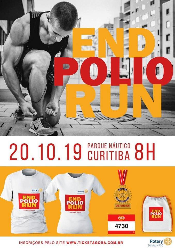 Em outubro, o Distrito 4730 irá promover a “End Polio Run” no Parque Naútico de Curitiba. O objetivo do evento é conscientizar e arrecadar fundos para o combate a poliomielite no Brasil. Erradicada desde 1994 no país, a doença que causa paralisia infantil ameaça retornar devido a queda nos índices de vacinação.