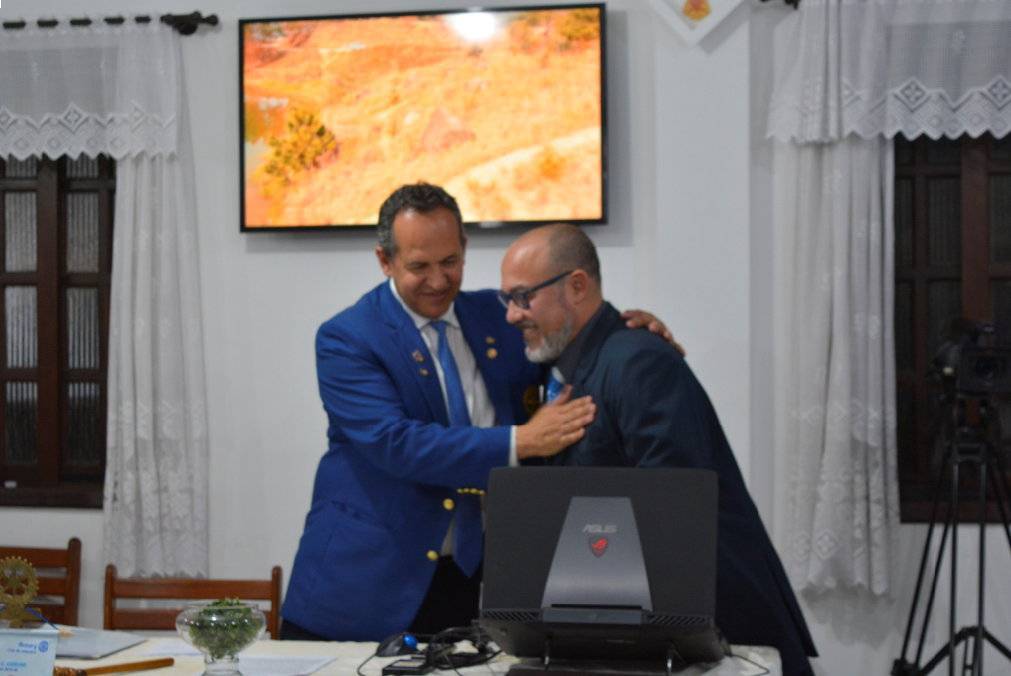 Aproveitando a visita do Governador Jorge, recebemos dois novos sócios no Clube, nossa nova companheira Alessandra Pinto Feistler e seu esposo Vanderson Okwieka. Foi uma visita oficial e uma festiva completa.