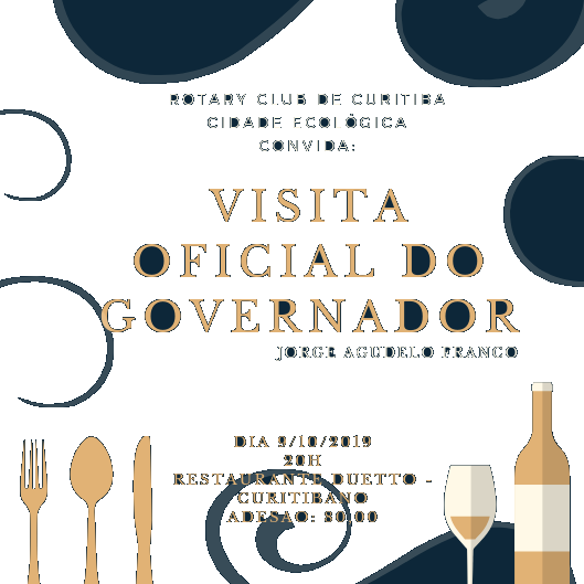 Todos estão convidados Para nossa festiva, jantar com o Governador Jorge Agudelo Franco. No dia 09.10.2019 as 20 h no restaurante Duetto - clube Curitibano.