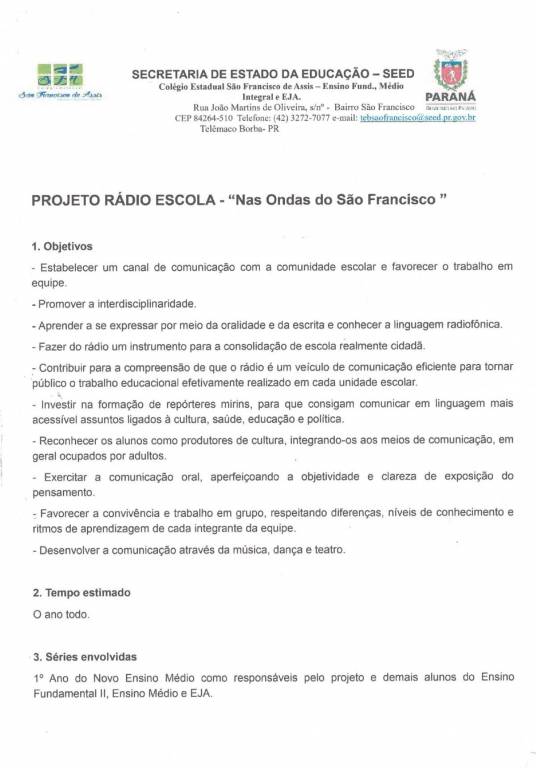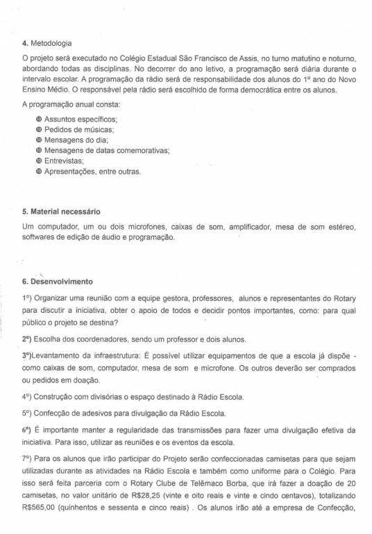 O Rotary Club de Telêmaco Borba recebeu na reunião de quinta-feira dia 26/09 aluna, a menor Joice, do 1º ano do ensino médio integral do Colégio Estadual São Francisco de Assis – Ensino Fund., Médio Integral e EJA para agradecimentos, ela representando todo corpo acadêmico do PROJETO RÁDIO ESCOLA “Nas Ondas do São Francisco ”, este projeto educacional foi eleito pelo Rotary Club de Telêmaco Borba para utilização da verba anualmente distribuída para apoio aos dos clubes de Rotary do Distrito 4730 de Rotary International.