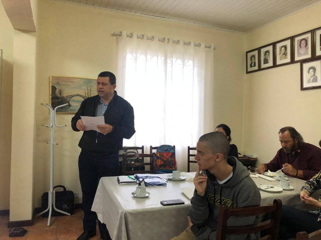 O café da manhã das reuniões do RCC Água Verde ficou ainda melhor com um delicioso bolo típico colombiano de frutas e nozes, feito pelo próprio Governador, e com um bolo comemorando a Visita Oficial, feito pela companheira GAD Cristianne Mazalotti Dangui, do RCC Pinhais.