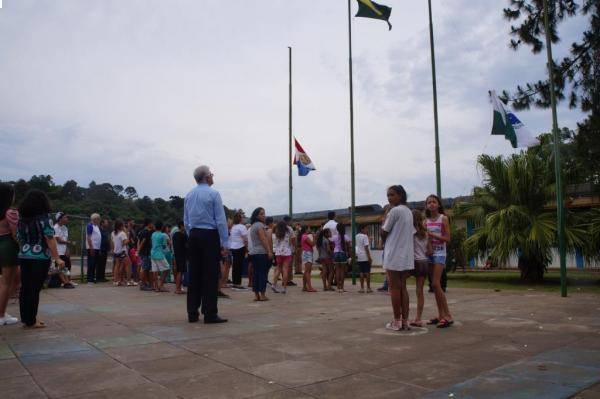 Neste sábado dia 23/11 às 15 horas realizamos uma homenagem ao Dia da Bandeira no Hall de entrada do Colégio Estadual São Francisco de Assis, localizado no Bairro São Francisco em Telêmaco Borba / PR onde fora desenvolvido com seus alunos o Projeto Humanitário do Distrito 4740 - "Erga essa Bandeira".