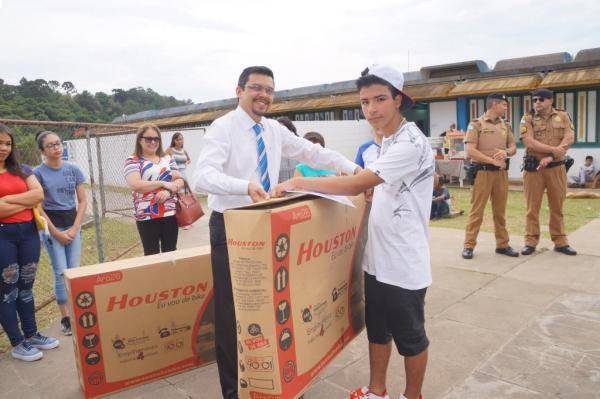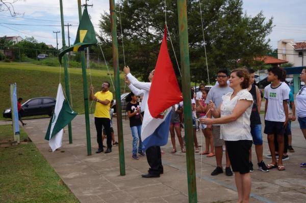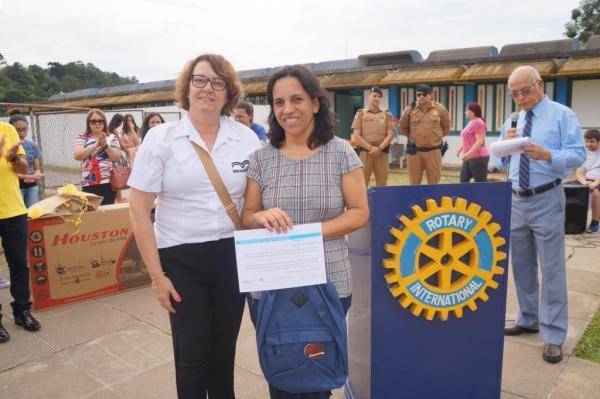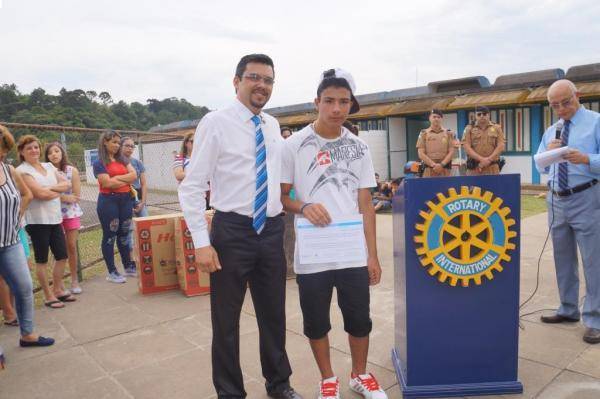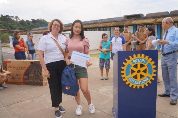 Projeto Humanitário "Erga essa Bandeira!" - Realização de uma grande celebração no Colégio Estadual São Francisco de Assis com o Rotary Clube de Telêmaco Borba premiando os vencedores dos concursos de frases e redações.