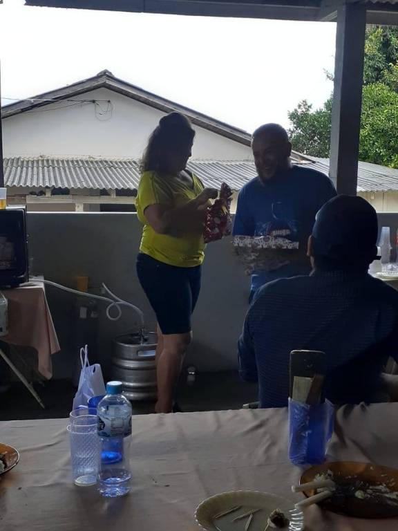 A tarde foi de muita festa e diversão, com churrasco, refrigerante, chopp, sorvetes e um amigo da hora muito animado.