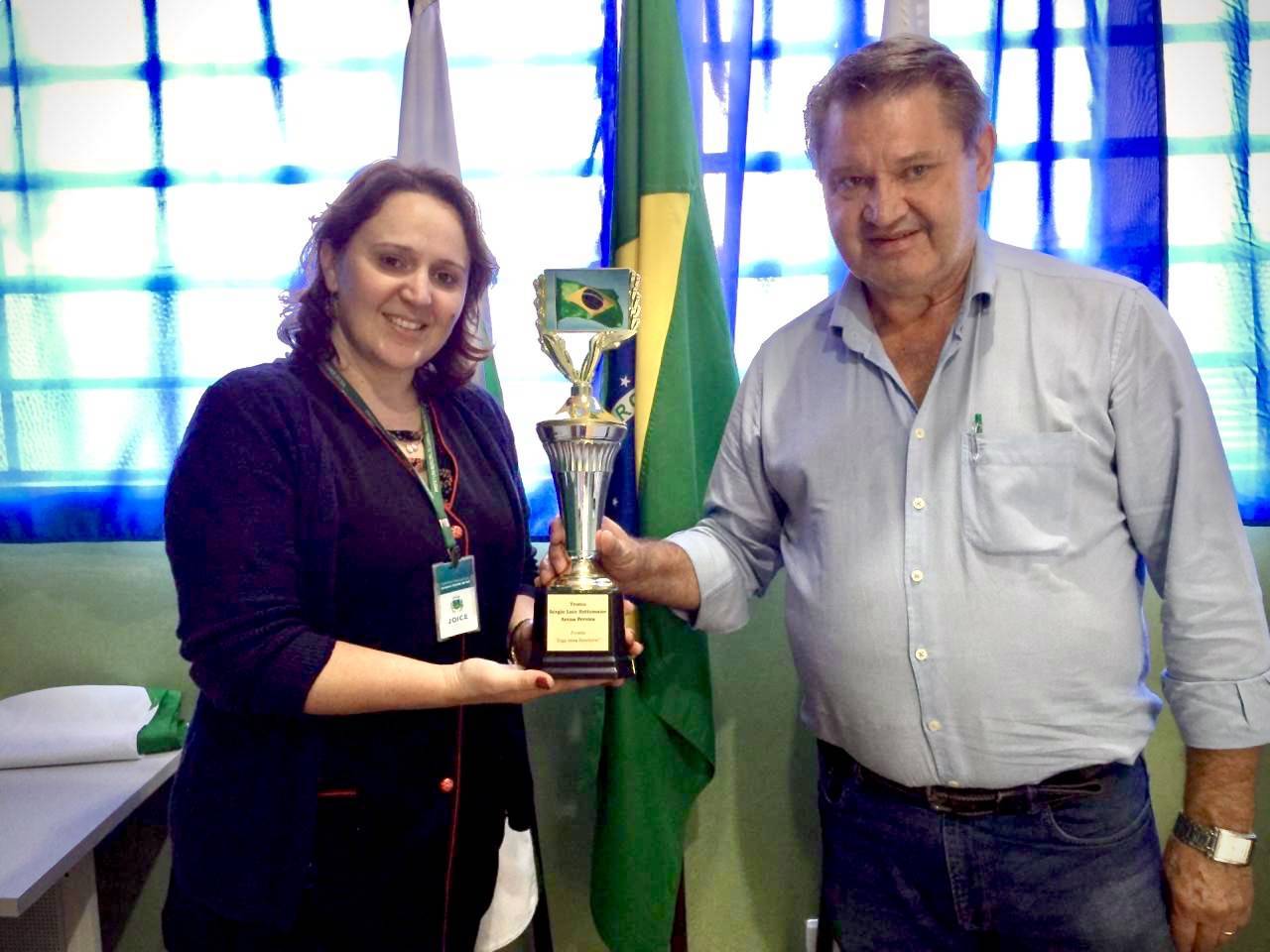 O companheiro Vitor Wiemes, representando o Rotary Club de Curitiba Cristo Rei fez a entrega do troféu do Projeto Erga essa Bandeira à Diretora da Escola Municipal Marcos Nicolau Strapassoni, vencedora com o maior número de frases selecionadas. Nessa oportunidade também foi entregue o prêmio para aluno da Escola Municipal Antonio José de Carvalho, 3º colocado.