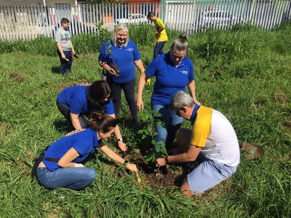 Hoje estivemos no Colégio Estadual João Bettega, realizando o plantio de 50 mudas de árvores.