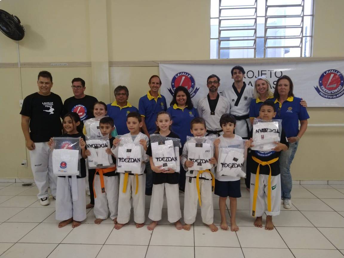 Dia 04 de fevereiro de 2020, o Rotary Club Ponta Grossa Alagados entregou para a Associação de Moradores de Olarias que é organizadora do Projeto TaeKwonDo Olarias, 32 Dobok (uniformes para a prática do esporte) que atende crianças e adolescentes do bairro. Presentes na entrega a presidente do Rotary Club Ponta Grossa Alagados Elaine Barbara Mattozo da Silva e demais companheiros.