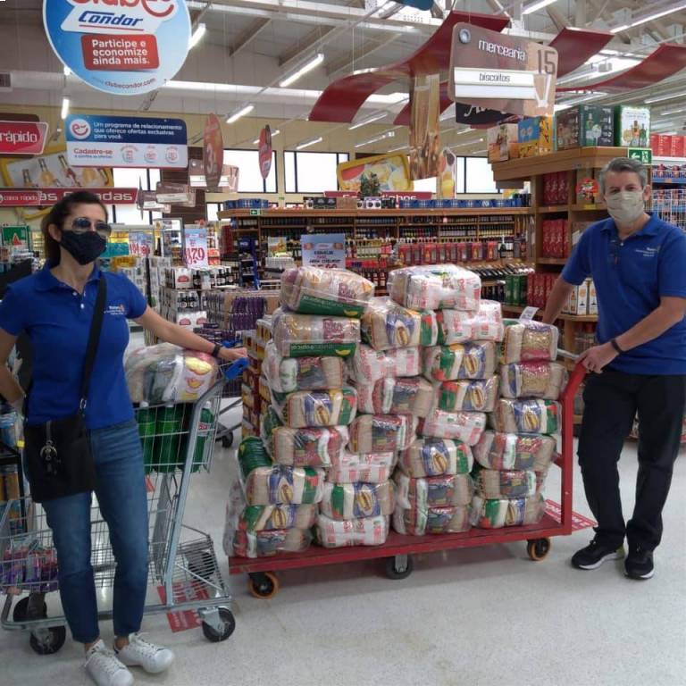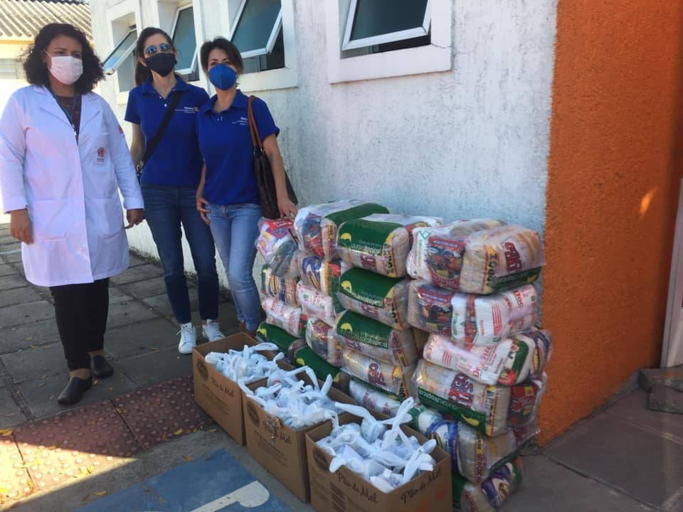 Hoje, compramos e entregamos 30 cestas básicas e 30 kits com água sanitária, sabonetes e máscaras, para a Unidade de Saúde Parolin.