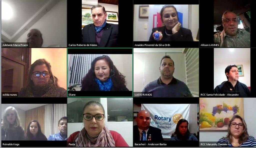 Reunidos em ambiente virtual, os membros do Rotary Bacacheri puderam contar com a presença de 36 companheiros dos Rotary Clubs de Curitiba Portão, Marumby, Terceiro Milênio, Santa Felicidade e Oeste. Estavam presentes ainda os companheiros do Rotary Club de Pinhais, Rotary Club de São Mateus do Sul, Rotary Club de Jaguariaíva, Rotary Club Rio-Mafra, Rotary Club de Quatro Barras Graciosa e Rotary Club de São Paulo Anchieta do Distrito 4420. A Governadora Eleita 2020-2021 Anaides Pimentel Orth e a Governadora Assistente 2019-2020 Eliane Alves Amorim também prestigiaram a solenidade.