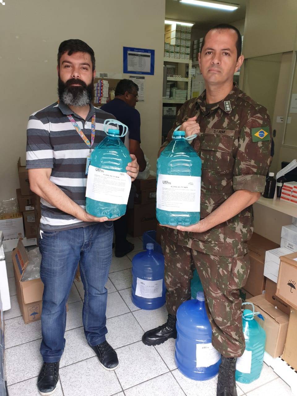 Participando em conjunto com o RCC Portao - doação de álcool Gel para o Exército Brasileiro.