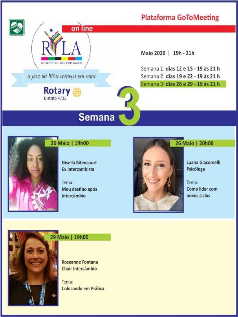 Terceira semana de treinamento da Liderança juvenil - Ryla , nossos palestrantes da semana são;