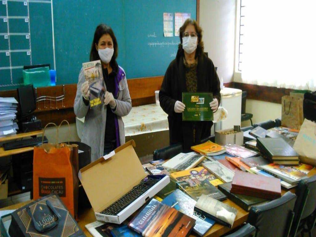 Representando os associados do Rotary Club de Curitiba Guabirotuba e a Comissão de Projetos de Serviços Humanitários, nosso Presidente 2020-2021, Francisco Borsari Netto e seus familiares atuaram na coleta, classificação, seleção e identificação das doações que foram entregues a Diretora da Escola.