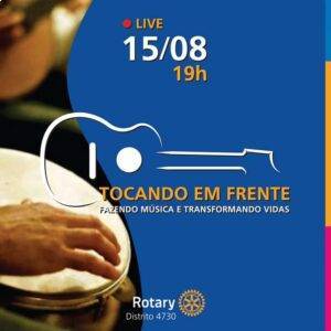 Com o objetivo de arrecadar recursos para a Fundação Rotária, o Distrito 4730 do Rotary International promove, no dia 15 de agosto, a LIVE “Tocando em frente – fazendo música, transformando vidas”, com apresentação musical ao vivo de renomados artistas regionais e também de músicos amadores dos clubes do Rotary de Curitiba, Ponta Grossa e Paranaguá.
