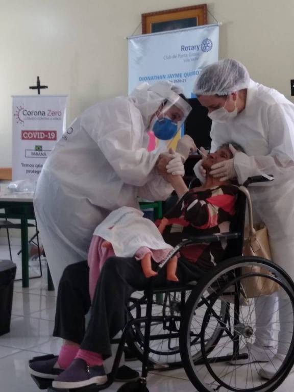 Funcionários, colaboradores e residentes da Colmeia Cristã Abegail e Lar da Vovozinha Balbina Branco passaram por testagem de covid-19. A ação faz parte do Projeto Corona Zero, realizado pelos Rotary em todo o Brasil, e tem o apoio do Ministério da Saúde.