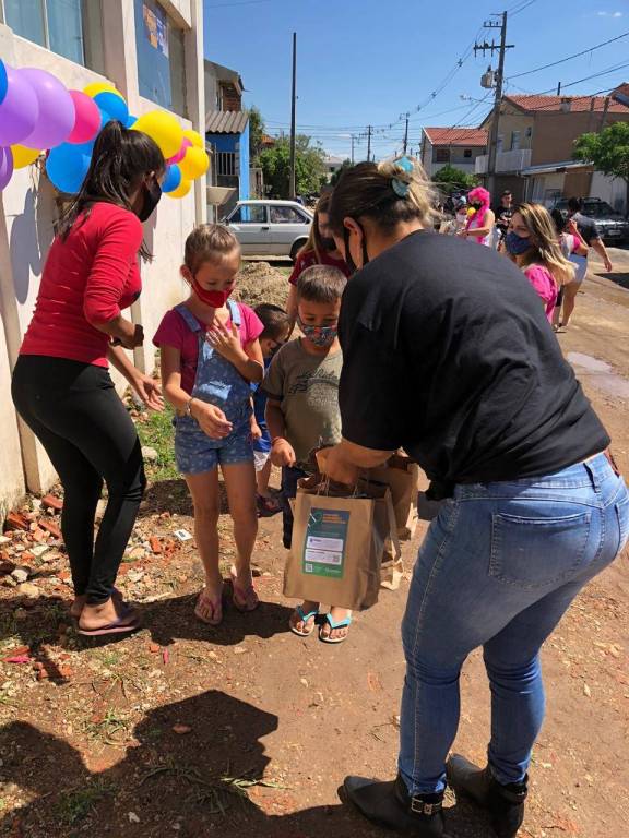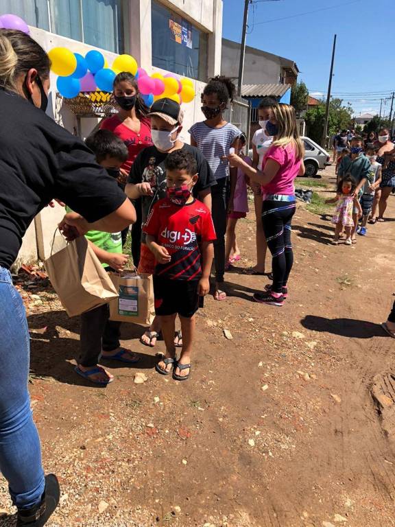 Poucas coisas alimentam mais a alma que o sorriso de uma criança. Pois, nesse sábado, 600 pimpolhos e pimpolhas da CUFA Mães de Favela, que fica na Vila Iná, em São José dos Pinhais, sorriram barbaridade. Todas elas receberam kits com deliciosas guloseimas e um pacote de leite em pó.